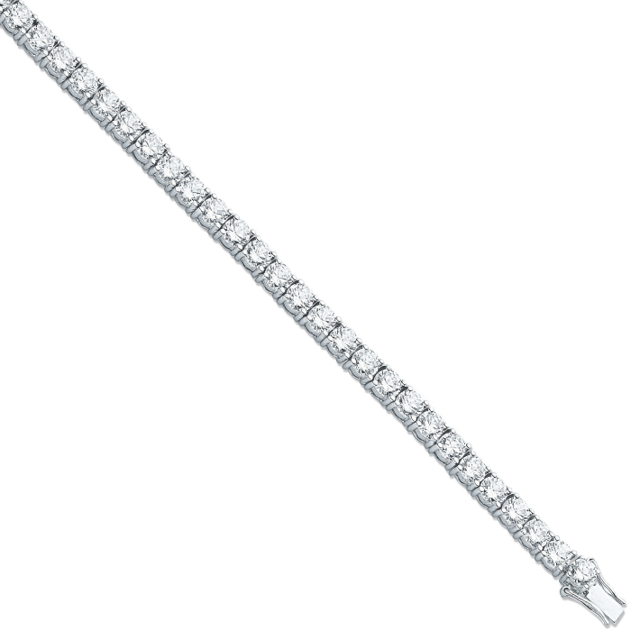 Turn heads with this Silver 5.2mm CZ Tennis Bracelet, a stunning blend of bold brilliance and timeless charm. Crafted from .925 sterling silver and rhodium plated for enhanced durability and long lasting shine, this bracelet features eye-catching 5.2mm round-cut cubic zirconia stones, each expertly set to maximize sparkle and create a seamless flow of radiance around your wrist.